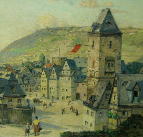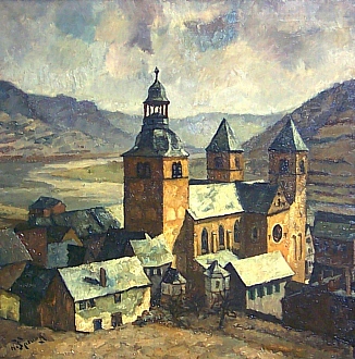 Hanns Sprung (1884 - 1948) - Karden an der Mosel mit Blick auf die Kastorkirche |
