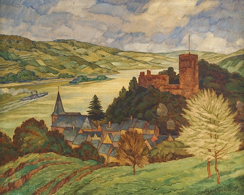 Robert Gerstenkorn (1877 - 1966) - Rheinlandschaft mit Blick auf kleine Ortschaft und Burgruine |