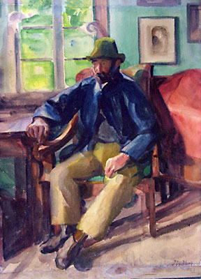 Malt Straßenszenen in Kohle, Aquarell. Liest Zola, V. Hugo u. Balzac im Original. »In Paris wurde ich Künstler«. |