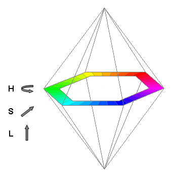 Der HSL-Farbraum in der Hexagonalen Doppel-Pyramide |