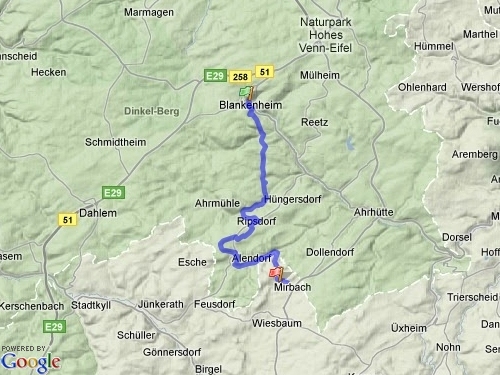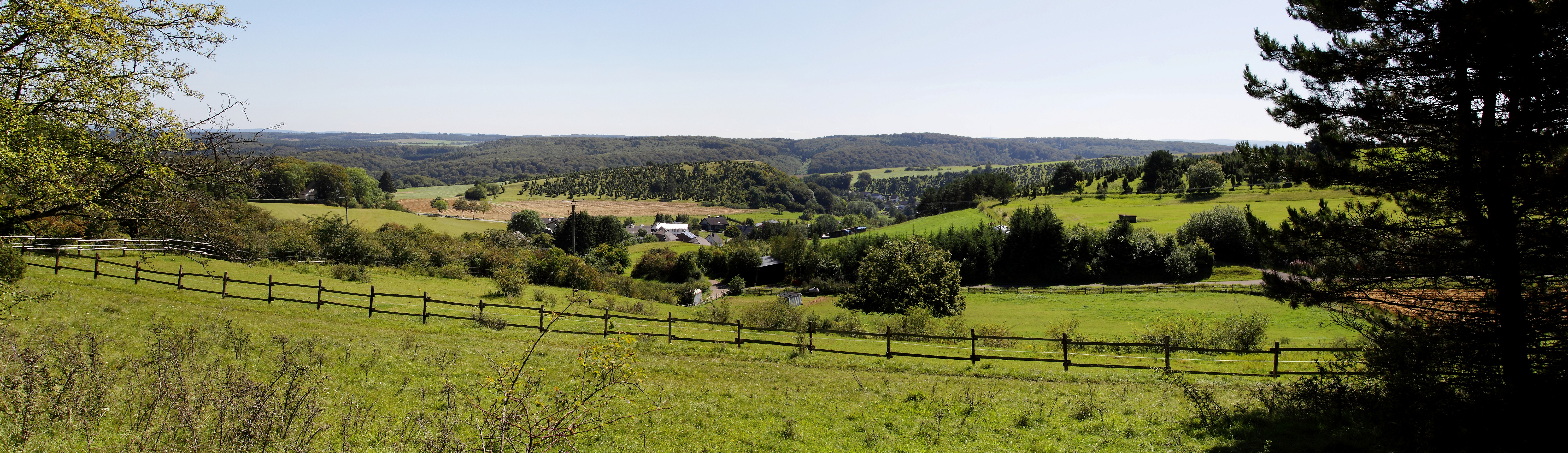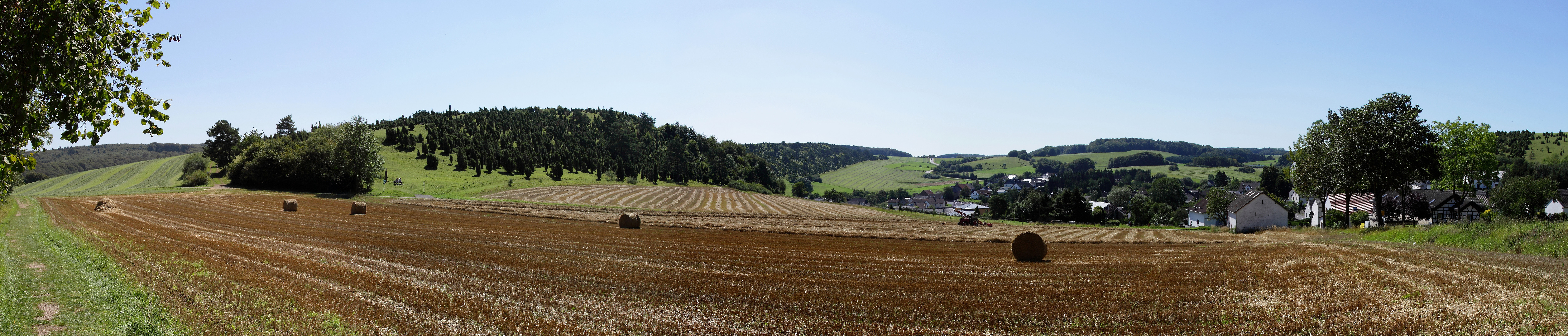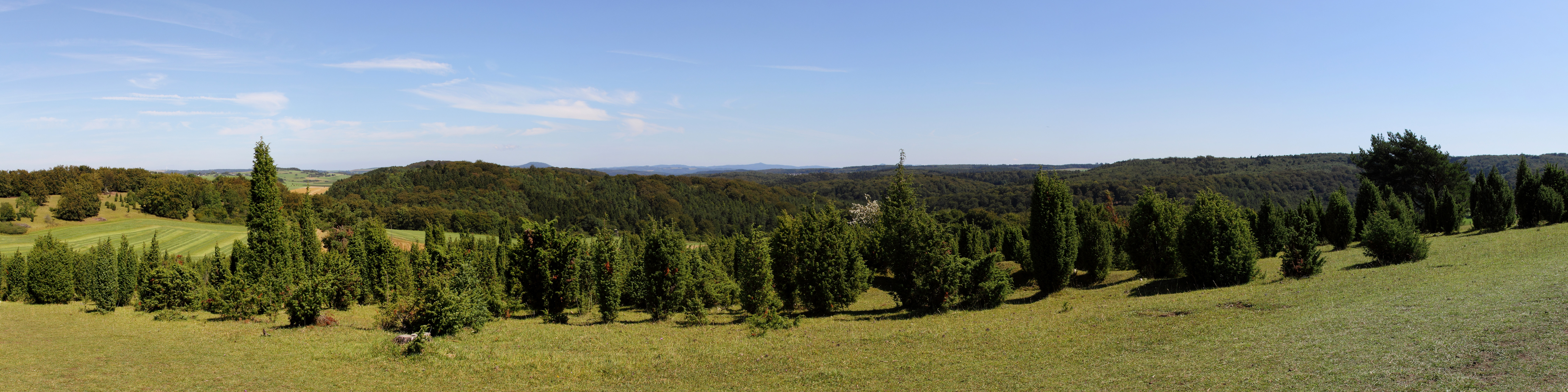 Alendorf vor dem Kalvarienberg (460 m bis 525 m ü. NN) im Wacholder-Naturschutzgebiet Lampertstal.